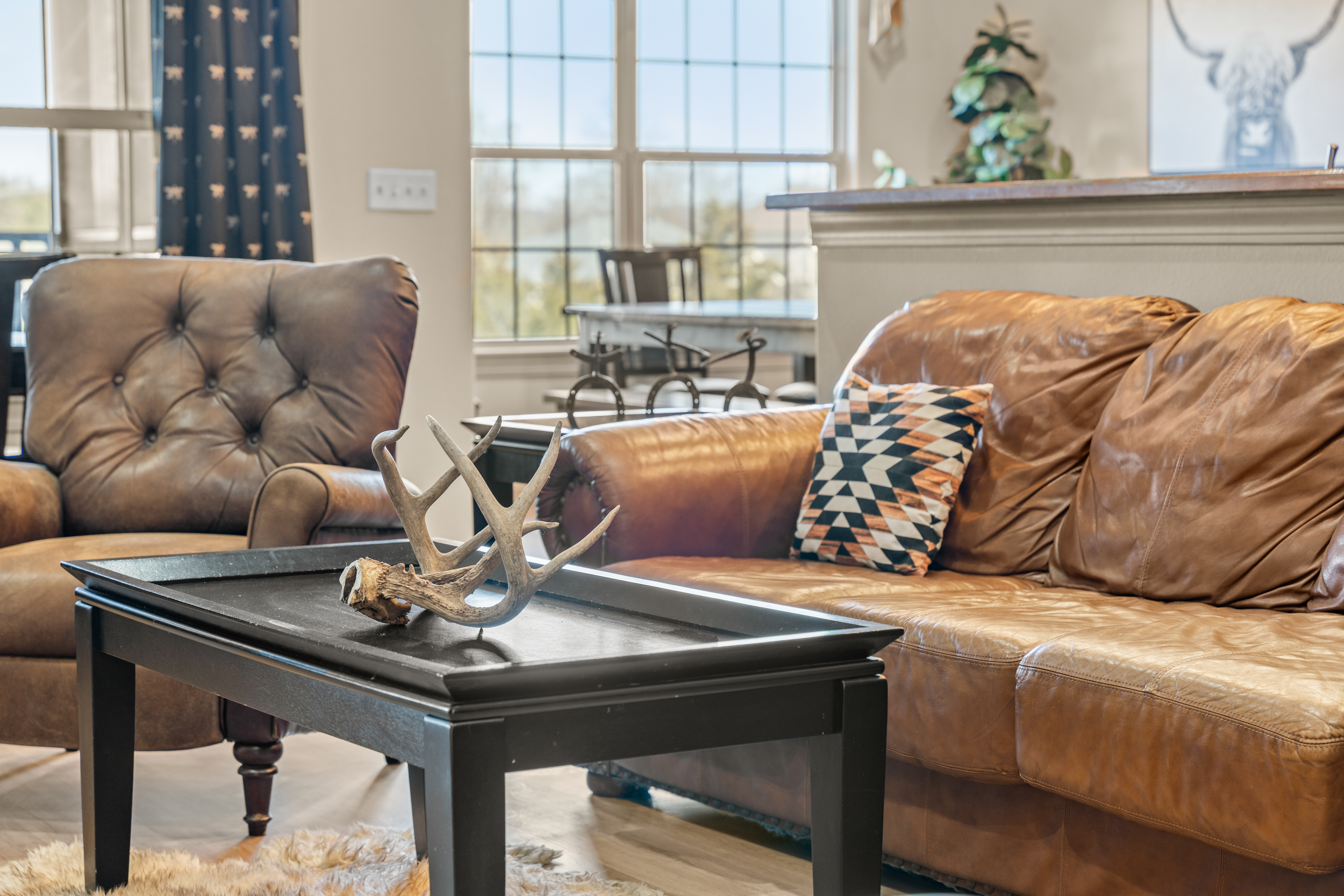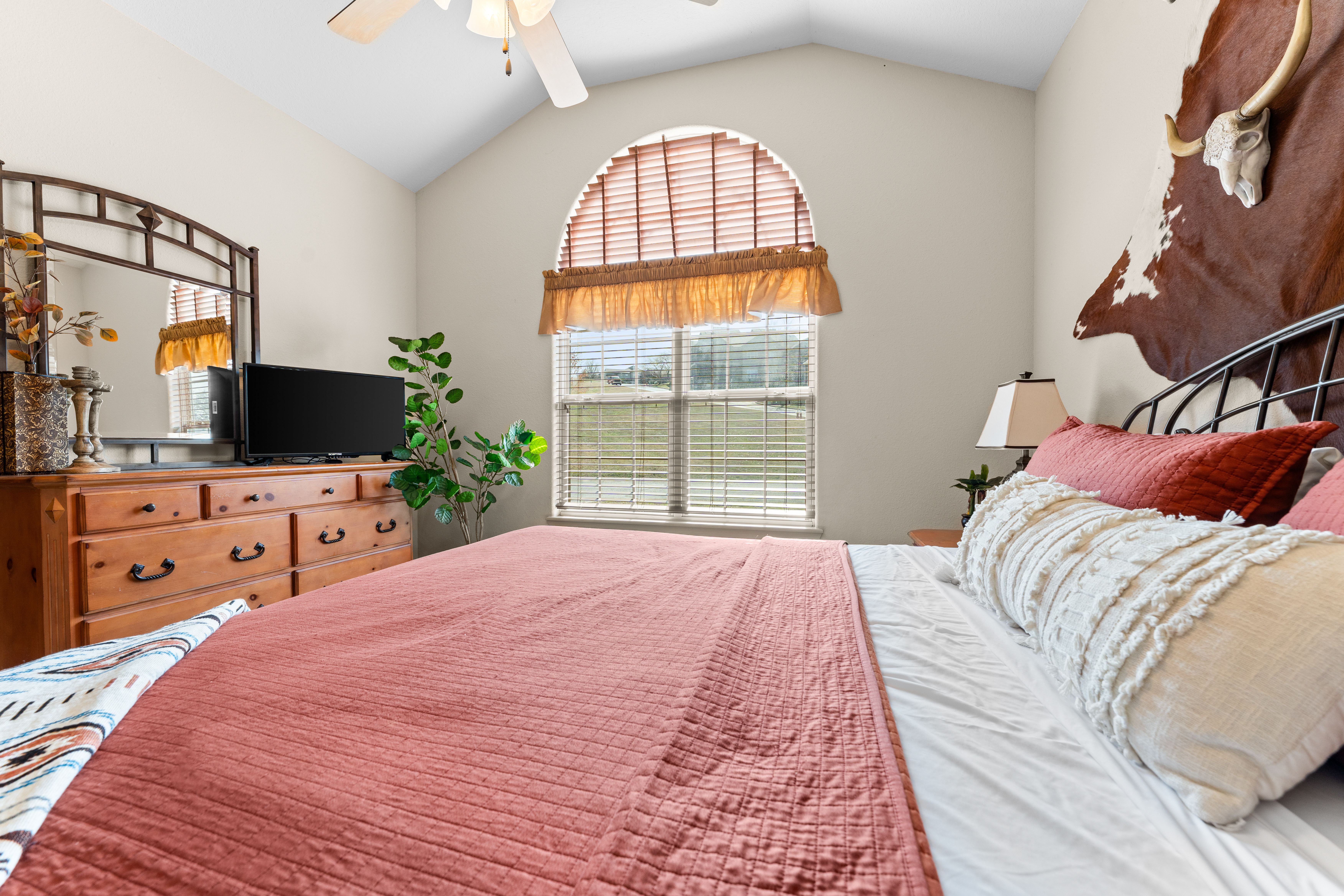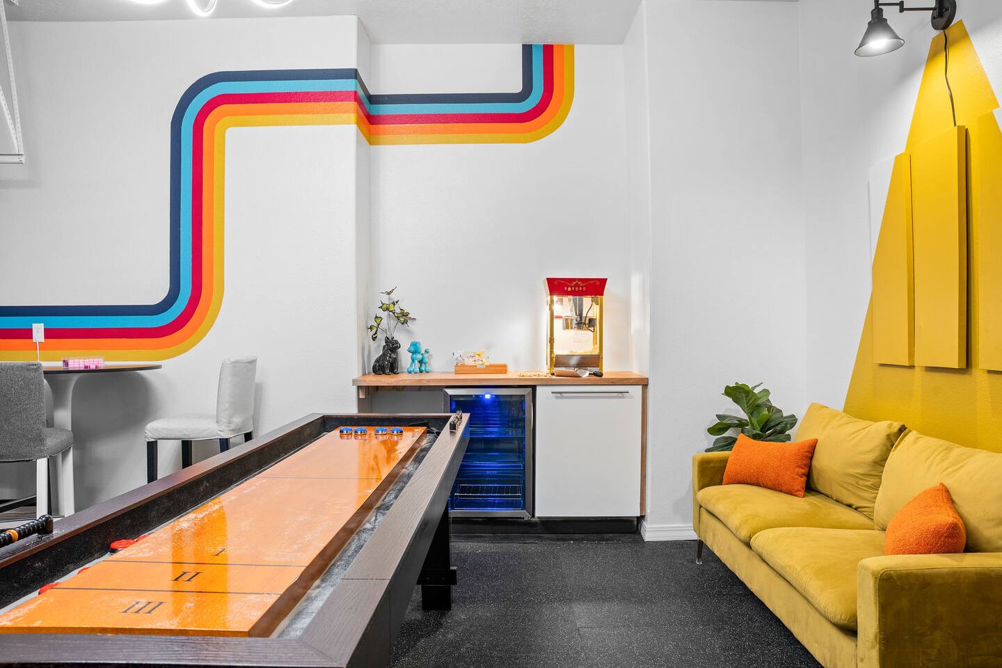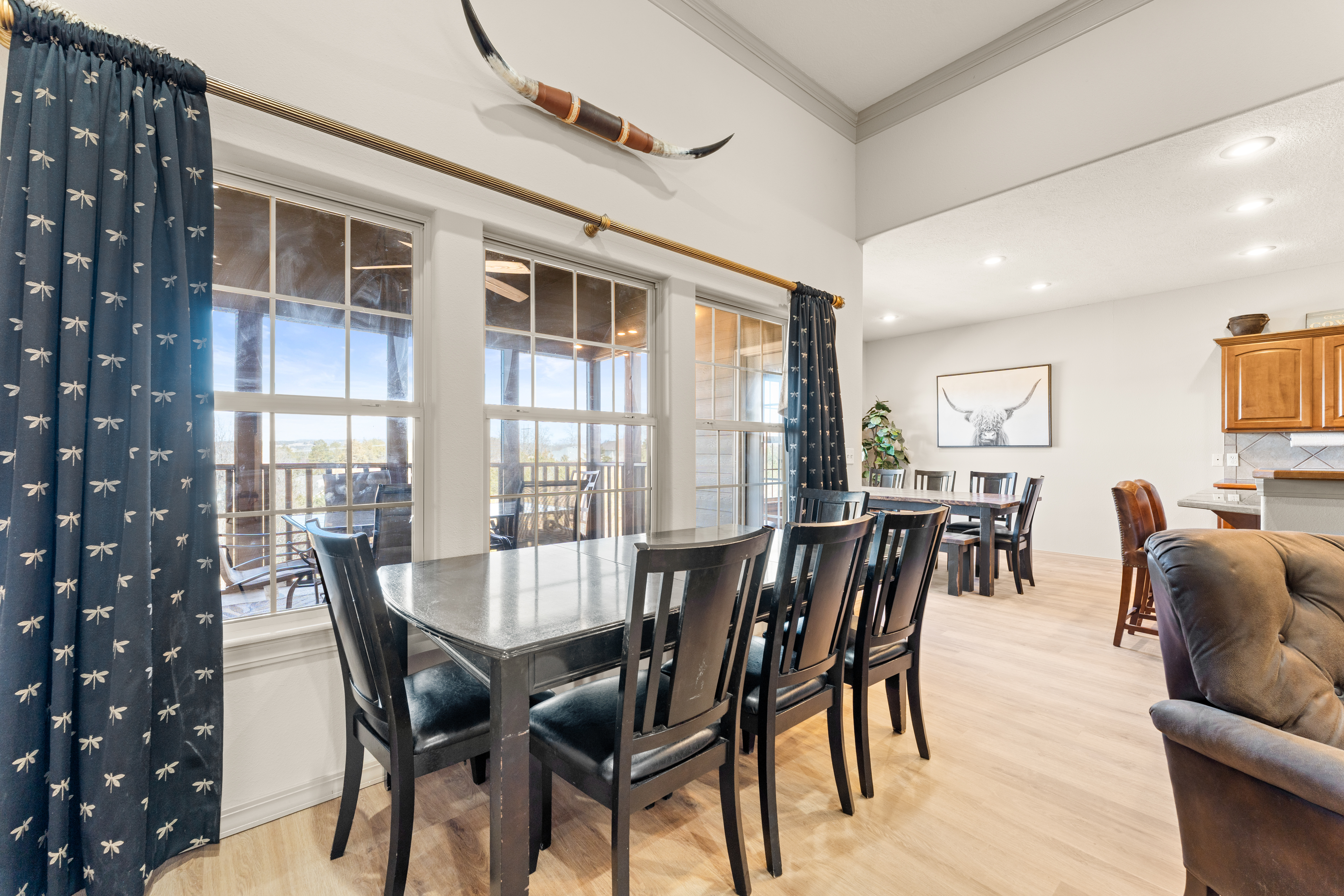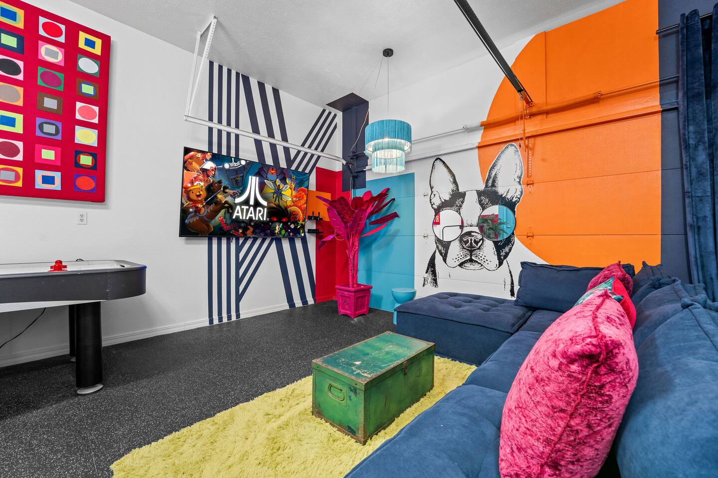 Rooms for Everyone Reunions require more than beds — they require flow. This nearly 3,500 sq ft home offers: • Multiple living areas to separate energy levels naturally • Upstairs living room, kitchen, and screened porch for adult gathering • Downstairs recreational room with direct patio and yard access • Dedicated game room (garage conversion) for teens and kids Adults can enjoy coffee on the screened porch while kids play downstairs. Grandparents can rest comfortably while still being close to the action. Everyone has space — without feeling disconnected. Sleeps Up to 20 Comfortably Designed to help you assign rooms confidently and avoid awkward sleeping politics. Upstairs • Bedroom 1: King bed with en suite bathroom (ideal for grandparents or primary hosts) • Bedroom 2: Queen bed • Bedroom 3: King bed • Living Room: Queen sofa sleeper Downstairs • Bedroom 4: Two Queen beds (great for cousins or sibling families) • Bedroom 5: King bed + Twin-over-Queen bunk • Bedroom 6 (bonus room through Bedroom 5): Queen bed • Living Room: Queen sofa sleeper Kings and Queens are ideal for parents, grandparents, adult couples, or older kids. Sofa sleepers are best suited for younger guests. Floorplan photos are included to make planning simple. Large Kitchen Designed for Group Use Cooking for large groups can feel overwhelming — this kitchen is set up to make it easier. The spacious kitchen is built for group cooking — with room for multiple people to prepare meals at once. Whether you're making big breakfasts before heading out or gathering to create a group dinner, the layout supports real group use. • Room for several cooks at once • Crockpot, bakeware, blender & kids dishes • Two coffee pots (because mornings matter) • Popcorn machine for family movie nights • BBQ grill for outdoor meals Morning coffee on the screened porch quickly becomes a favorite ritual Entertainment for Every Generation Kids & Teens • Dedicated game room • Air hockey & shuffleboard • Upright arcade games • Board games, cornhole & retro Atari hookups • Cowboy dress-up & selfie station • Resort pool access (2-minute walk to one of three pools, seasonal) Note: Pinball machine is no longer available Adults • Comfortable upstairs living room • Screened porch seating • Outdoor patio space • Pool Table • Roku TVs throughout the home • Wi-Fi for streaming and desk for remote work Grandparents • Quiet bedroom options • Easy proximity to main living areas • Peaceful resort setting without city noise