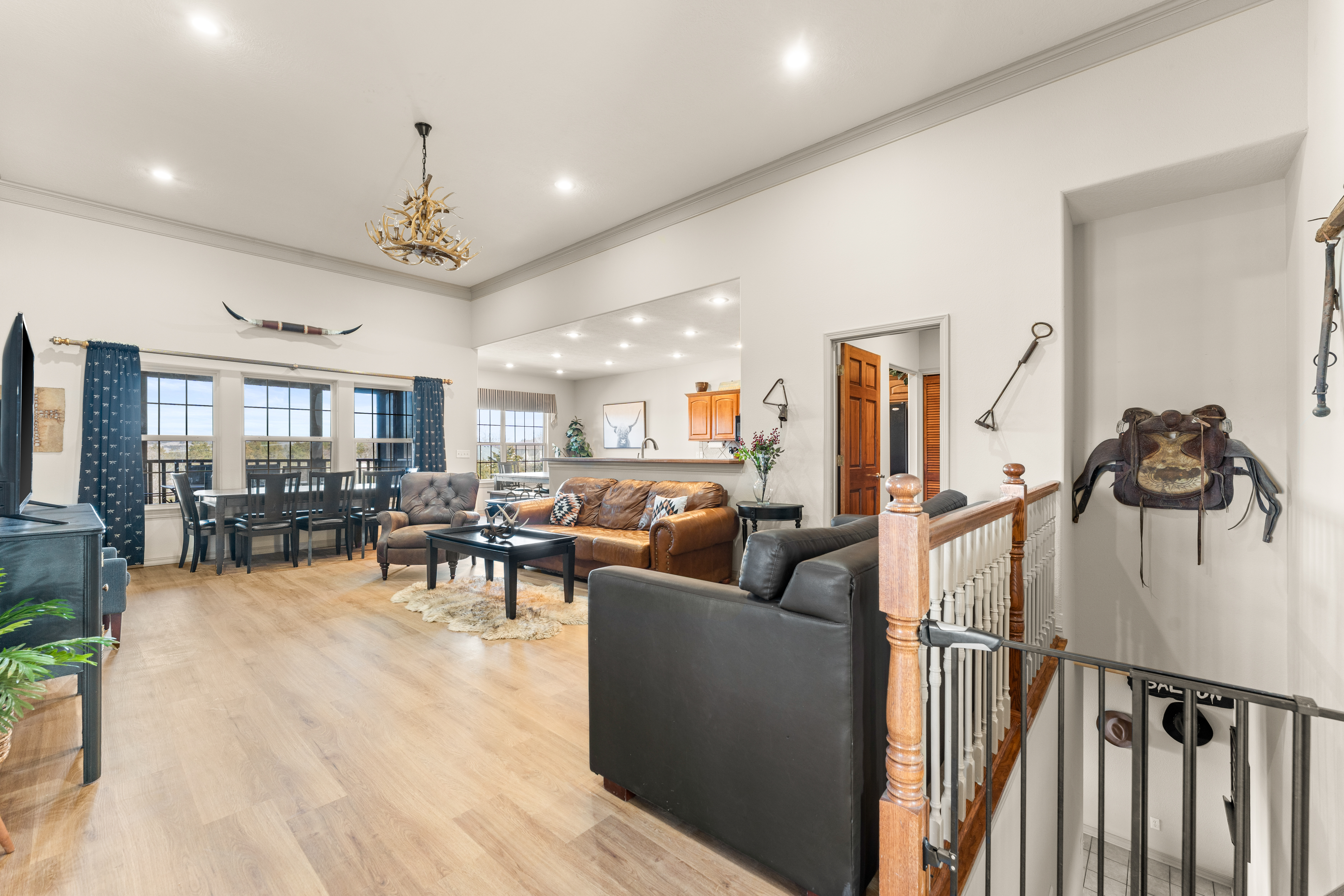 Designed for large, multi-generational gatherings, this spacious StoneBridge Resort retreat makes family trips easy and comfortable. With 6 bedrooms sleeping up to 20 guests, everyone can spread out while staying connected. Enjoy relaxed meals and conversation upstairs, plus built-in entertainment downstairs for the kids. Just minutes from Silver Dollar City in the peaceful hills of Branson, it’s the perfect mix of convenience and quiet resort charm.