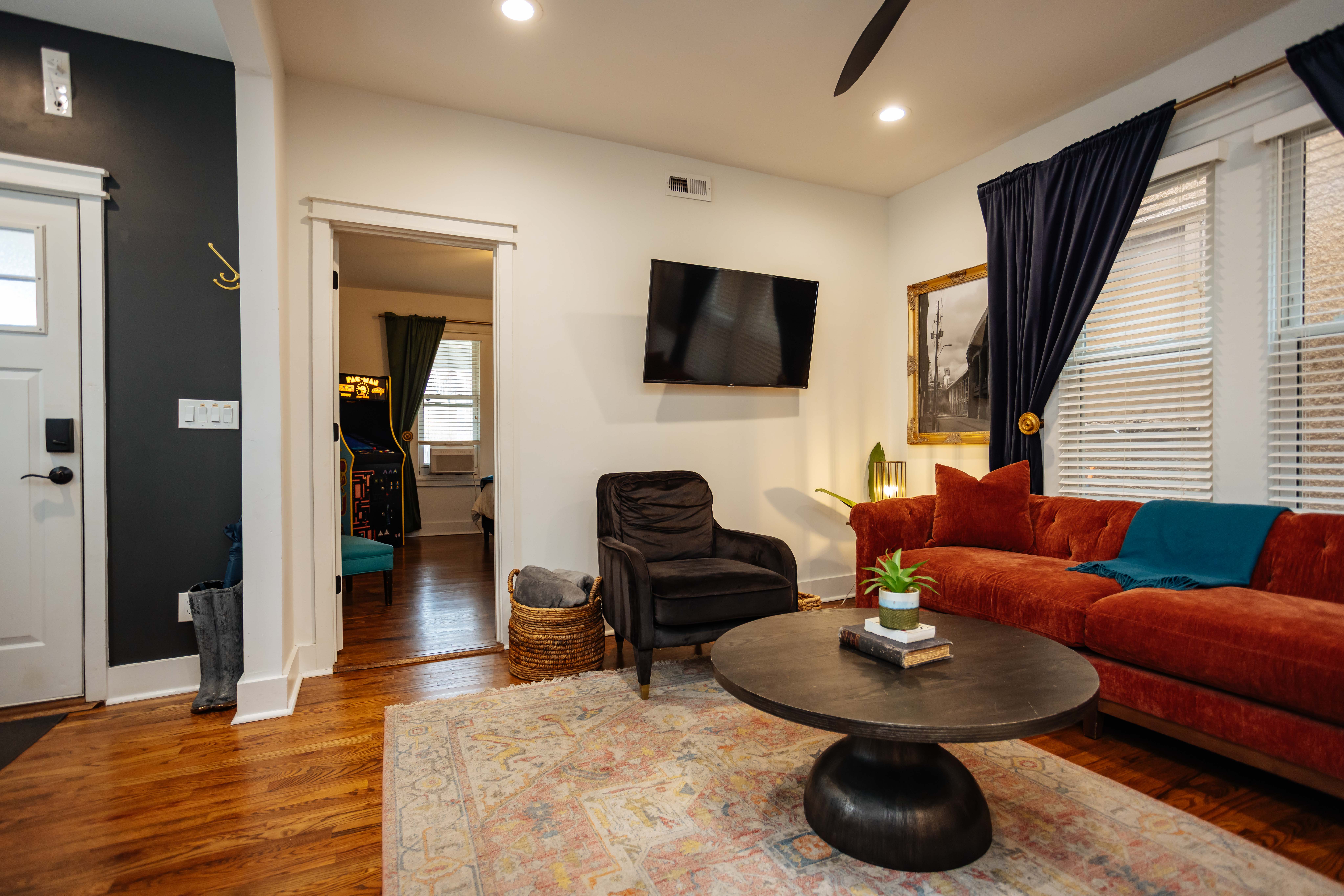 Bijou House is located in the heart of Kansas City in an urban neighborhood where you can expect an eclectic mix of people. Please do not book if you do not feel comfortable in an urban environment. One of my favorite things about Kansas City are its old glorious buildings - which is why I fell in love with this 1880 Victorian charmer. This home has seen a lot in it's 100+ years - including it's latest renovation transforming the bathrooms & kitchen into luxury spaces. There are 3 bedrooms, each with 1 bed: Upstairs: 1 King, 1 Queen, Full Bath Downstairs: 1 King, 1/2 Bath A few games and a fun retro arcade are available for those rainy days when you want to stay home. On lovely days, enjoy the cozy backyard oasis with a gas grill for cooking & a gas firepit for relaxing.