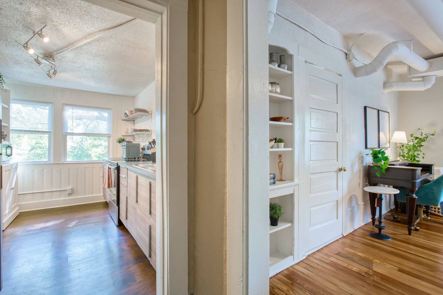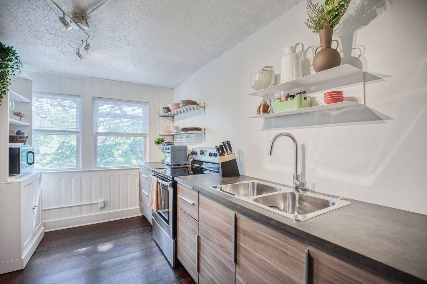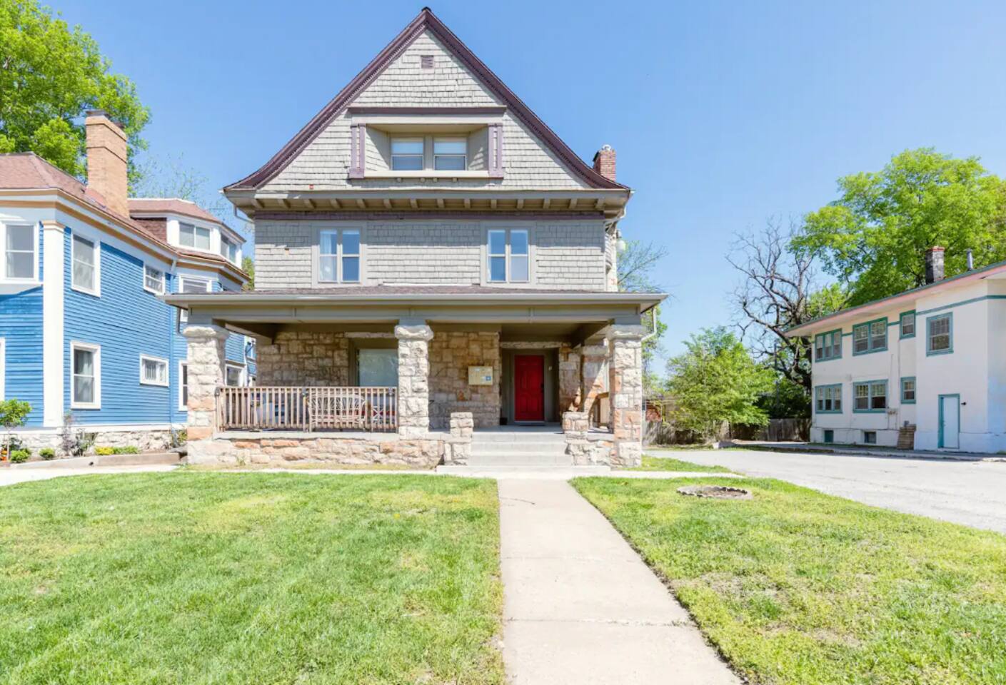 One of my favorite things about Kansas City are its old glorious buildings - which is why I fell in love with this 1900 Victorian charmer. This home has seen a lot in it's 100+ years, including being converted into 4 separate apartments. This Midtown getaway is a happy, refreshing and beautiful escape from the ordinary hotel. Tall ceilings, fun touches and a clean palette create an inviting & refreshing space. This 1 bedroom apartment is on the 2nd floor - accessible only by an exterior stairwell. You'll find a fully equipped kitchen to meet your cooking & entertaining needs. Coffee, sugar & creamer are provided (or Starbucks is just 2 blocks away). Access your own TV apps through the Roku Smart TV. Fiber Internet available - the fastest in town. If you're here for work - there's a desk in the living room & a printer for your use.