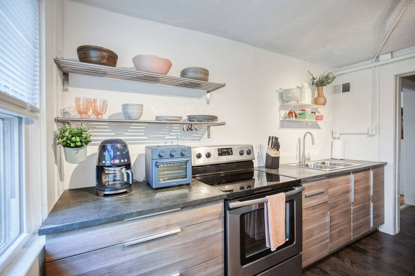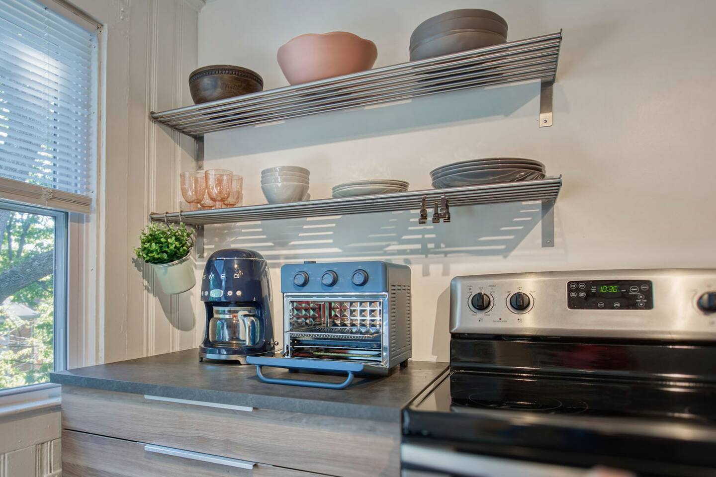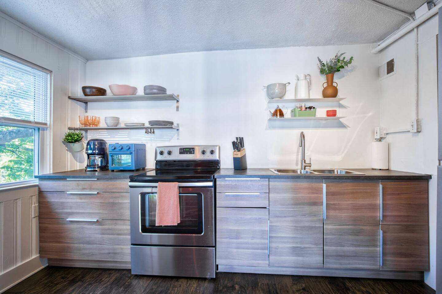 One of my favorite things about Kansas City are its old glorious buildings - which is why I fell in love with this 1900 Victorian charmer. This home has seen a lot in it's 100+ years, including being converted into 4 separate apartments. This Midtown getaway is a happy, refreshing and beautiful escape from the ordinary hotel. Tall ceilings, fun touches and a clean palette create an inviting & refreshing space. This 1 bedroom apartment is on the 2nd floor - accessible only by an exterior stairwell. You'll find a fully equipped kitchen to meet your cooking & entertaining needs. Coffee, sugar & creamer are provided (or Starbucks is just 2 blocks away). Access your own TV apps through the Roku Smart TV. Fiber Internet available - the fastest in town. If you're here for work - there's a desk in the living room & a printer for your use.