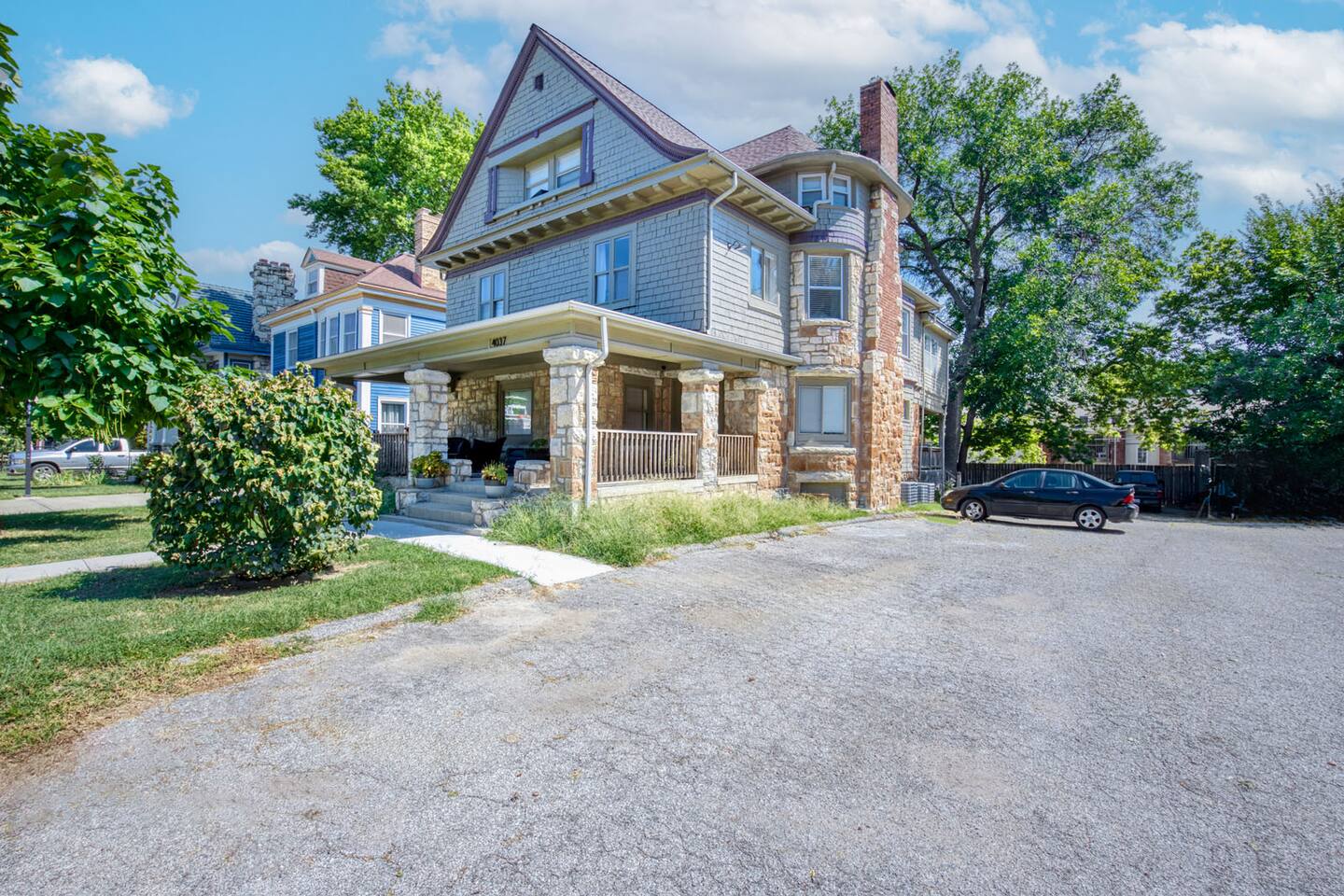 There is plenty of off-street parking in the side lot - able to accommodate a moving van and more than one car if you have it. This is a 2nd floor apartment, accessed by exterior stairwell on the side of the home. PETS: Cats & Dogs that don't bark are welcome. I must be respectful of the neighbors so cannot have barkers. Camp Bow-wow is a few blocks away if you have a dog that barks a lot. There is a one-time pet fee. Please include your pet on your reservation. SOCCER/FUTBOL DISTANCES Located on Streetcar line: -FIFA Fan Festival -CPKC Stadium (Take streetcar directly there!) Driving Distances - 17mins drive to Arrowhead Stadium - 13mins drive to Swope Park Soccer Village - 24mins drive to Compass Minerals National Performance Center