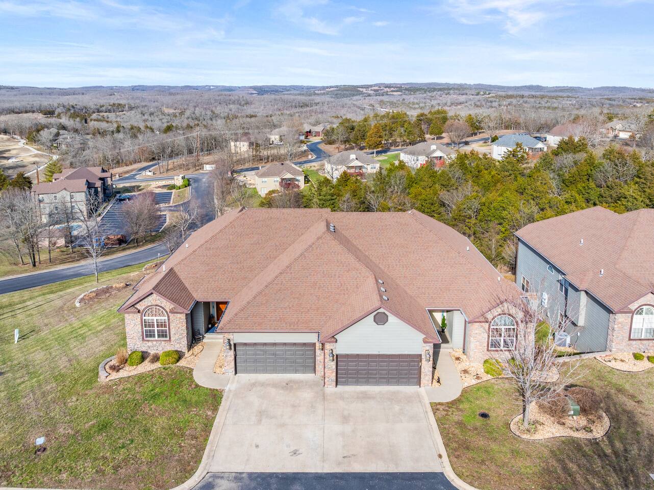 The Complete Reunion Setup | Sleeps Up to 40 Perfect for large, multigenerational gatherings, this duplex in StoneBridge Resort offers nearly 7,000 sq ft designed for organized, stress-free group stays. With two full homes under one booking, your family can stay together while spreading out across multiple living areas, kitchens, porches, and entertainment spaces. Just 5 minutes from Silver Dollar City and near Table Rock Lake, enjoy both convenience and a peaceful resort setting.